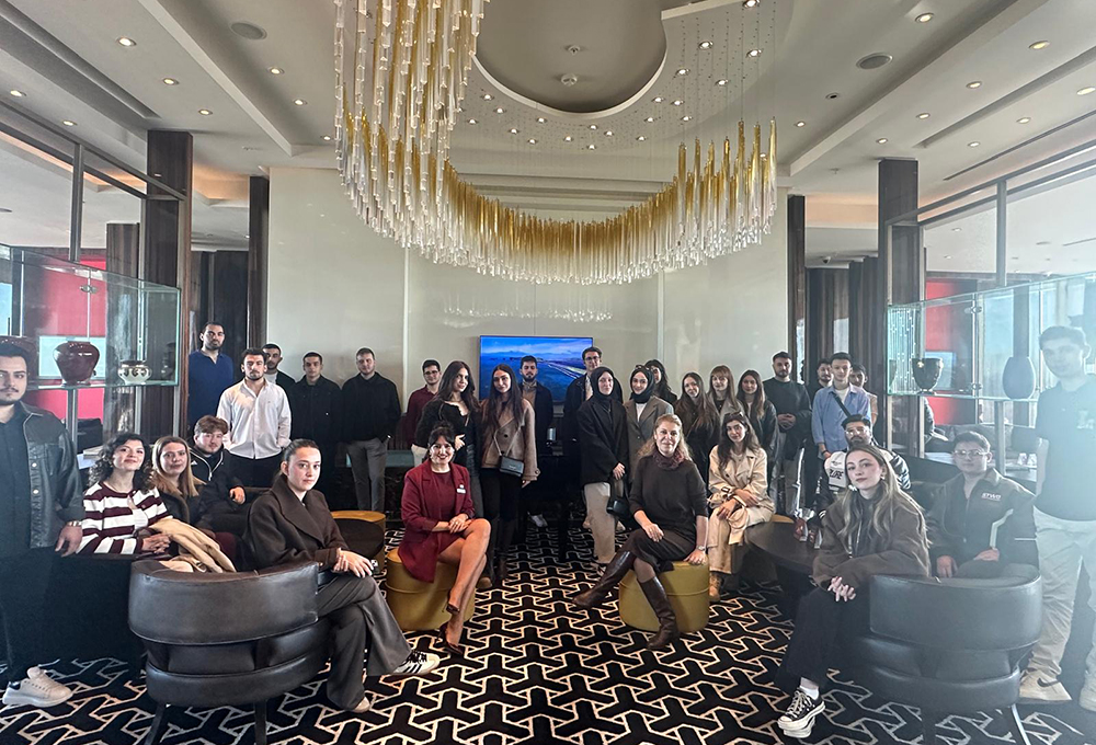 İktisadi ve İdari Bilimler Fakültesi tarafından, 25 Kasım Salı günü Hilton İstanbul Bomonti Hotel & Konferans Merkezi'ne teknik gezi düzenlendi. Proje ve Sektörel İş Birlikleri Koordinatörü Doç. Dr. Meri Taksi Deveciyan’ın organizasyonuyla gerçekleştirilen ziyaret, otelin çeşitli birimlerinin tanıtıldığı kapsamlı bir teknik tur ile başladı ve Hilton Bomonti İstanbul Hotel’in öğrencilerimize ikramları ile devam etti. Gezi kapsamında, Hilton Bomonti Hotel İnsan Kaynakları Birimi Eğitim ve Gelişim Müdürü Aylin İlbay tarafından operasyonel planlama, insan kaynakları yönetimi, departmanlar arası koordinasyon ve staj olanakları konusunda bilgilendirici sunum yapıldı.